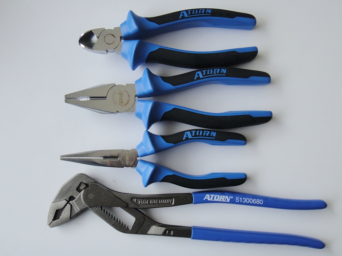 品牌:ATORN 德國進口,品質(zhì)保證! 規(guī)格:4件,手柄帶兩件式防滑套。鉗頭高光拋光,鍍鉻處理。采用堅固的塑料盒包裝。C45鋼,經(jīng)過有淬火和調(diào)質(zhì)處理,刃口感應淬火 套裝內(nèi)容:1把180mm組合鉗,一把160mm尖嘴鉗,一把160mm偏口鉗,一把250mm水泵鉗