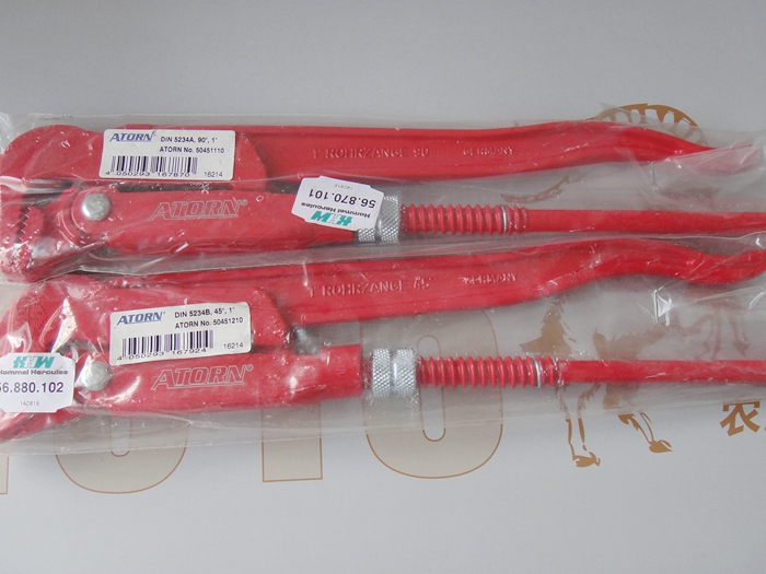 規(guī)格:三點(diǎn)管道鉗,感應(yīng)淬火鉗口,調(diào)節(jié)螺母保險(xiǎn),紅色粉末涂漆;鉻釩鋼。