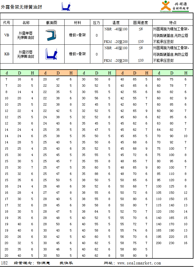* 表示必填采購(gòu):外露骨架無(wú)彈簧油封VB